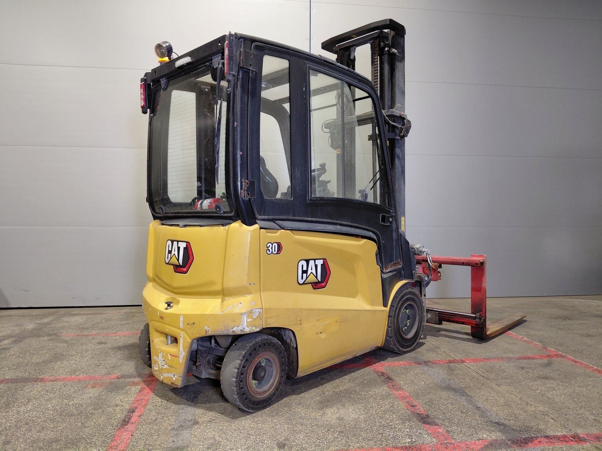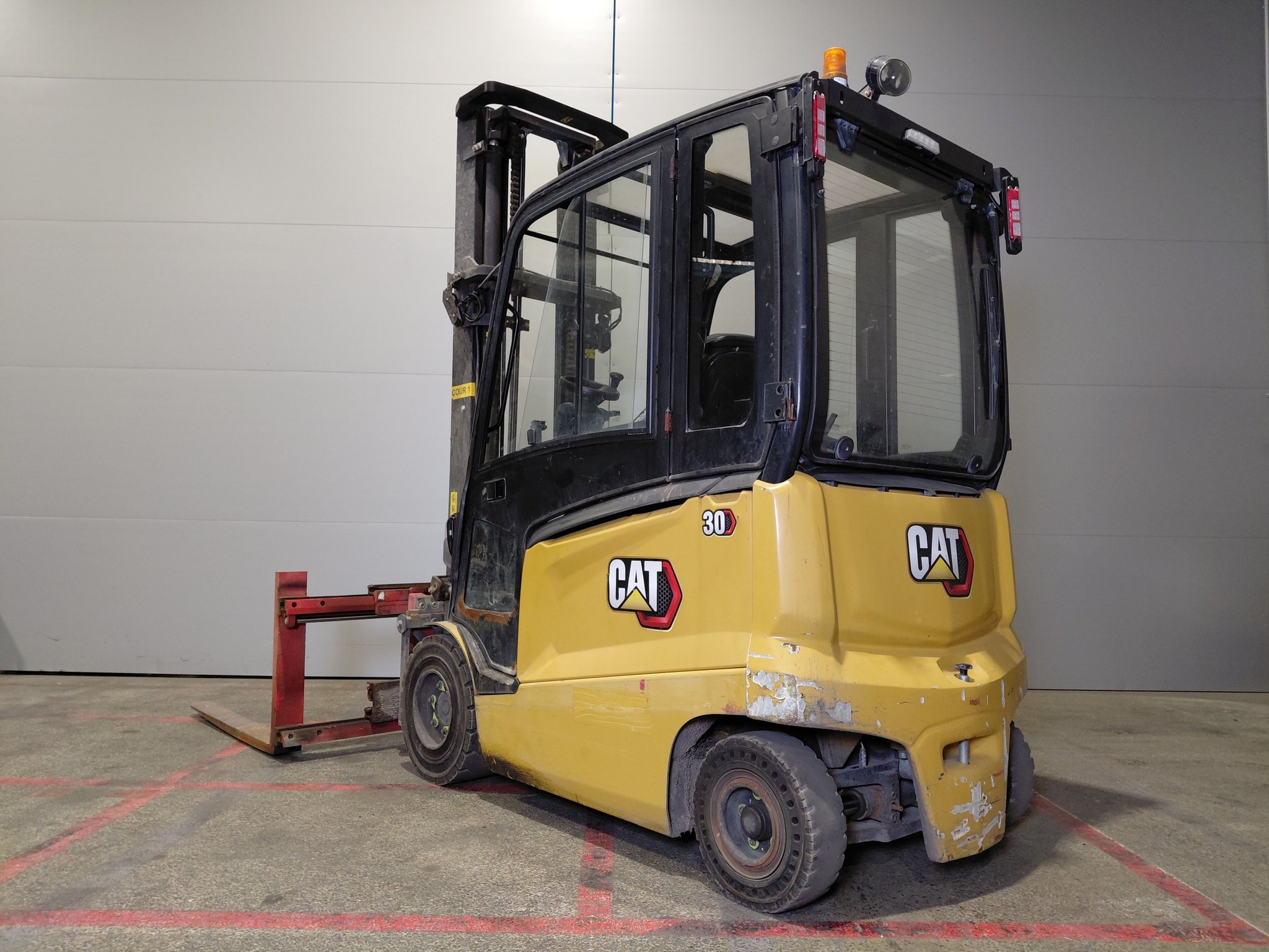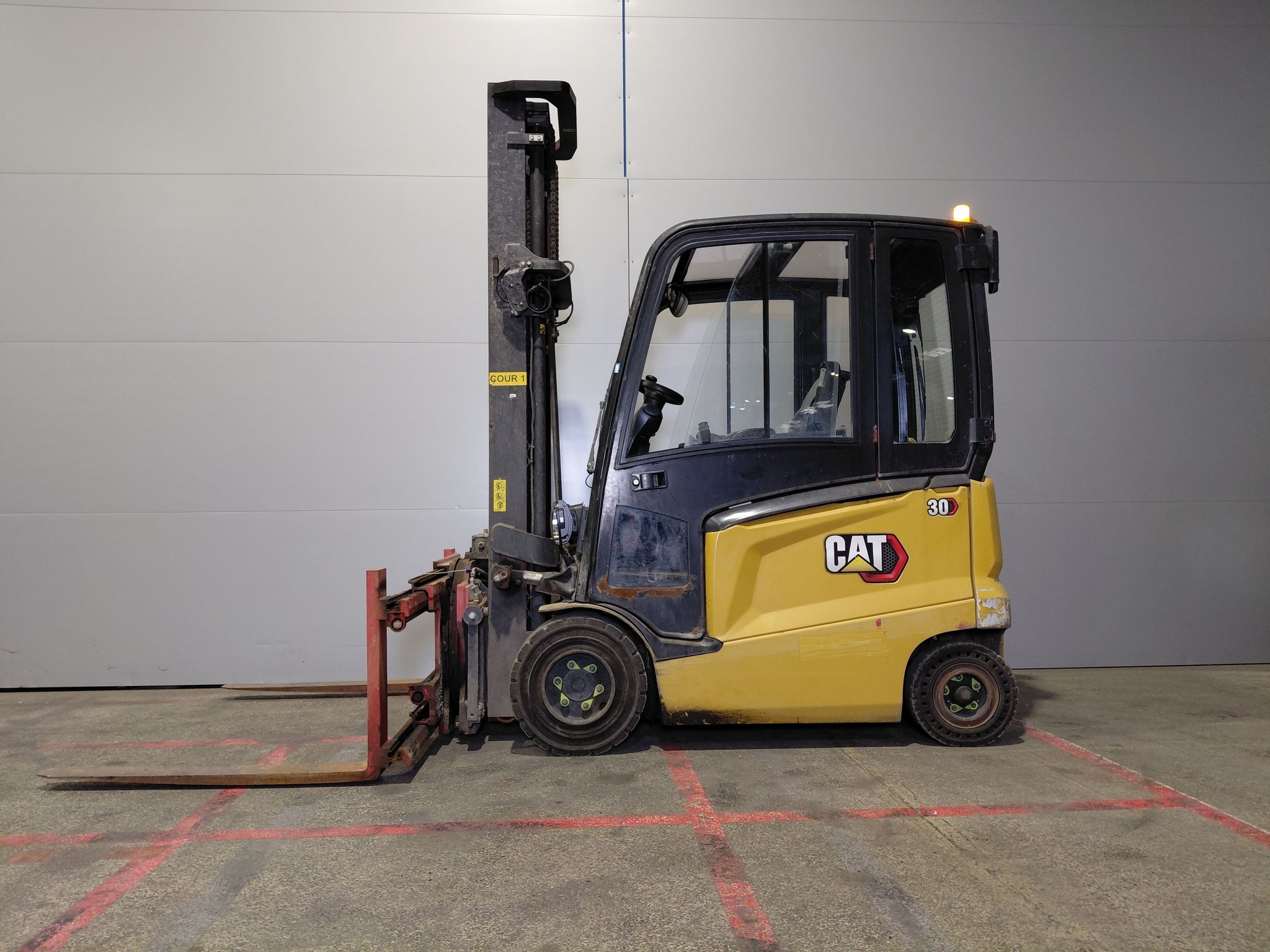 360° turner Cabin Electric brake Fork spreader 4-way hydraulic Heating Lead battery LED road lighting Mini-lever Panoramic rearview mirror Rear blue spot Rear work lights Reported sideshift Reverse signal Strobe beacon |