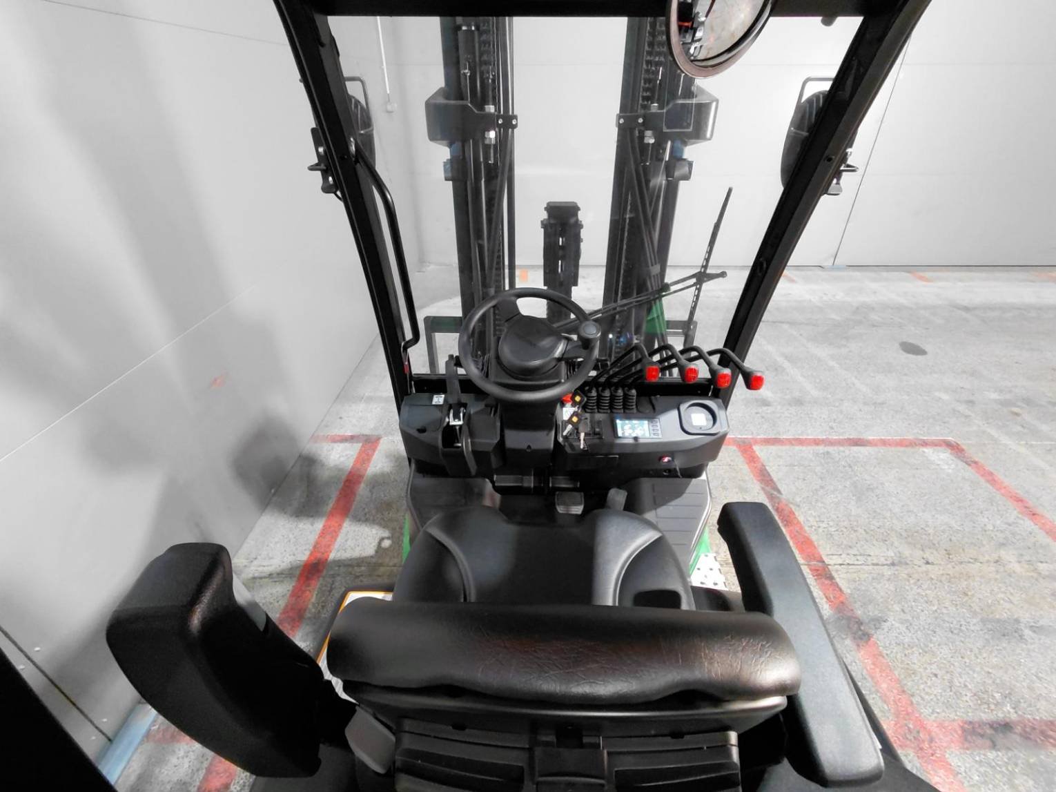 Battery Battery charger Covered roof 4th valve inlet on fork carriage Front windshield LED road lighting Load backrest Panoramic rearview mirror Rear blue spot Rear work lights Reported sideshift Reverse signal Strobe beacon USB plug |